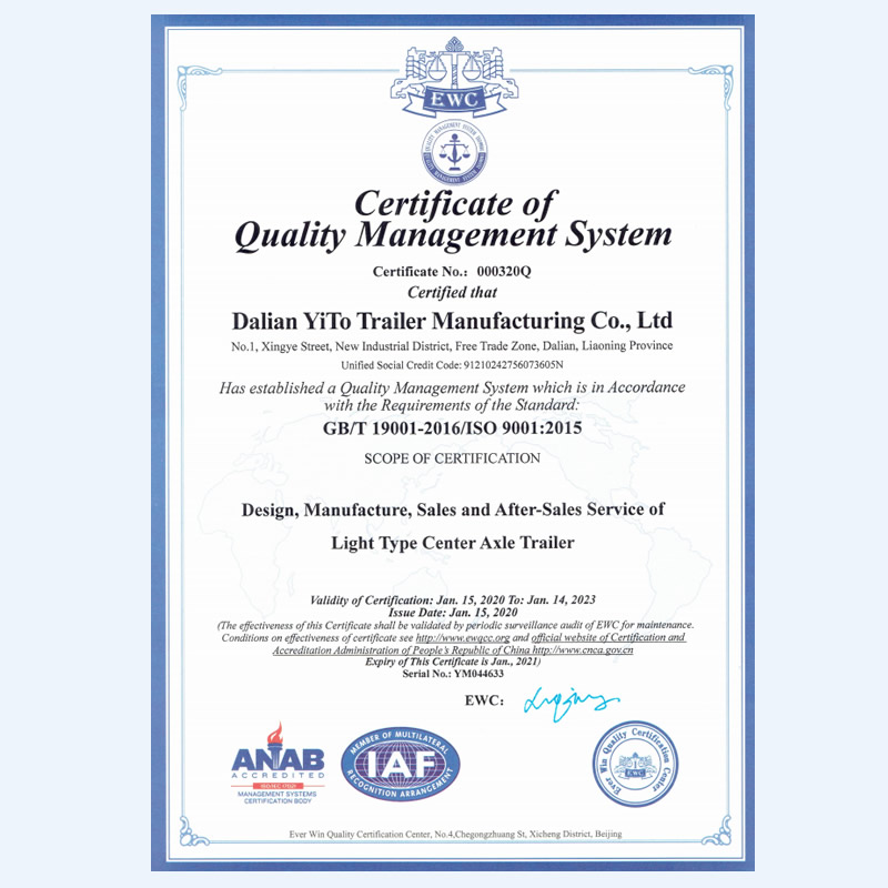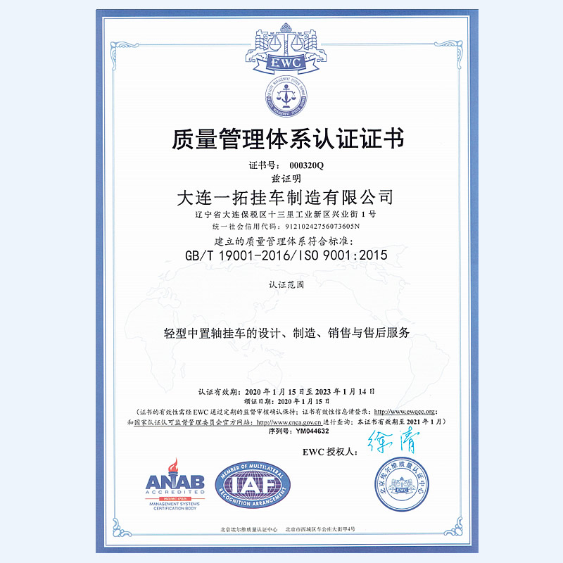 大連一拓掛車制造有限公司,地處遼寧省大連保稅區(qū)十三里工業(yè)新區(qū)興業(yè)街1號(hào),公司占地45000m㎡,總建筑面積24000㎡,現(xiàn)有生產(chǎn)、檢測(cè)、研發(fā)設(shè)備100余臺(tái)套,擁有自動(dòng)化程度很高的機(jī)器人焊接生產(chǎn)線。大連一拓掛車制造有限公司成立于2013年,是一家具備國(guó)家工信部專用車生產(chǎn)資質(zhì)企業(yè),致力于乘用車掛車的設(shè)計(jì)和生產(chǎn),主要產(chǎn)品有:平板板式輕型中置軸掛車、欄板式輕型中置軸掛車、廂式輕型中置軸掛車、特種結(jié)構(gòu)式輕型中置軸掛車,并承接各種用途輕型中置軸掛車設(shè)計(jì)等業(yè)務(wù)。公司秉承“銳意進(jìn)取,開(kāi)拓創(chuàng)新,精益求精,誠(chéng)信共贏”的運(yùn)營(yíng)理念,竭誠(chéng)為您服務(wù)。